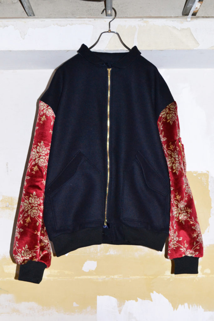 このブルゾンは、厚手の生地を使用しているのですが、重過ぎずストレスの少ないゆったりとしたシルエットです。袖の柄は、花柄なので全身コーデにいいアクセントになると思います。